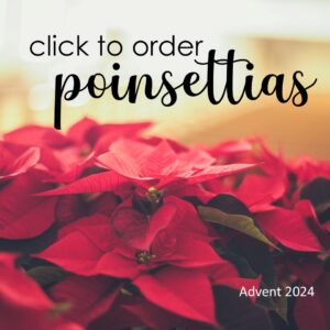 Poinsettias will be in the Sanctuary beginning December 14 through Christmas Eve then available for you to take home and enjoy through the Christmas season!